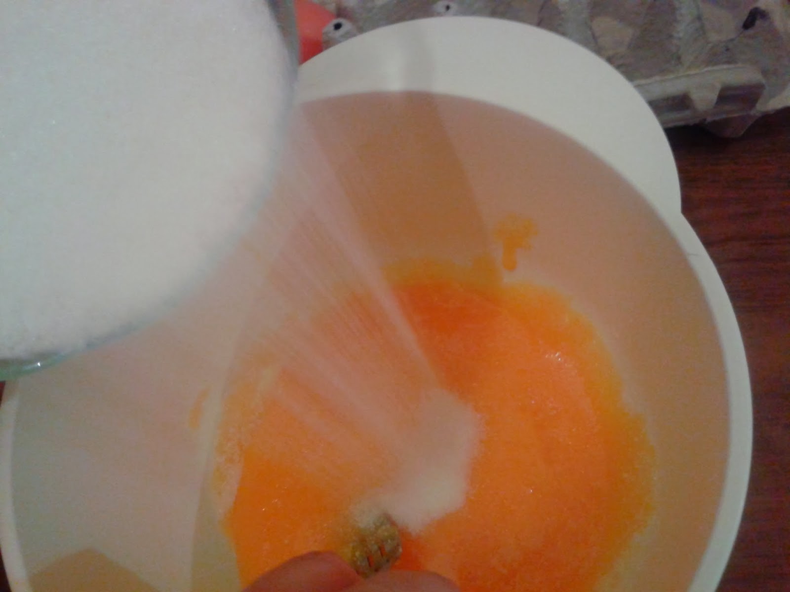 Se separa ouale iar albusurile se bat spuma cu zaharul, zaharul vanilat, praful